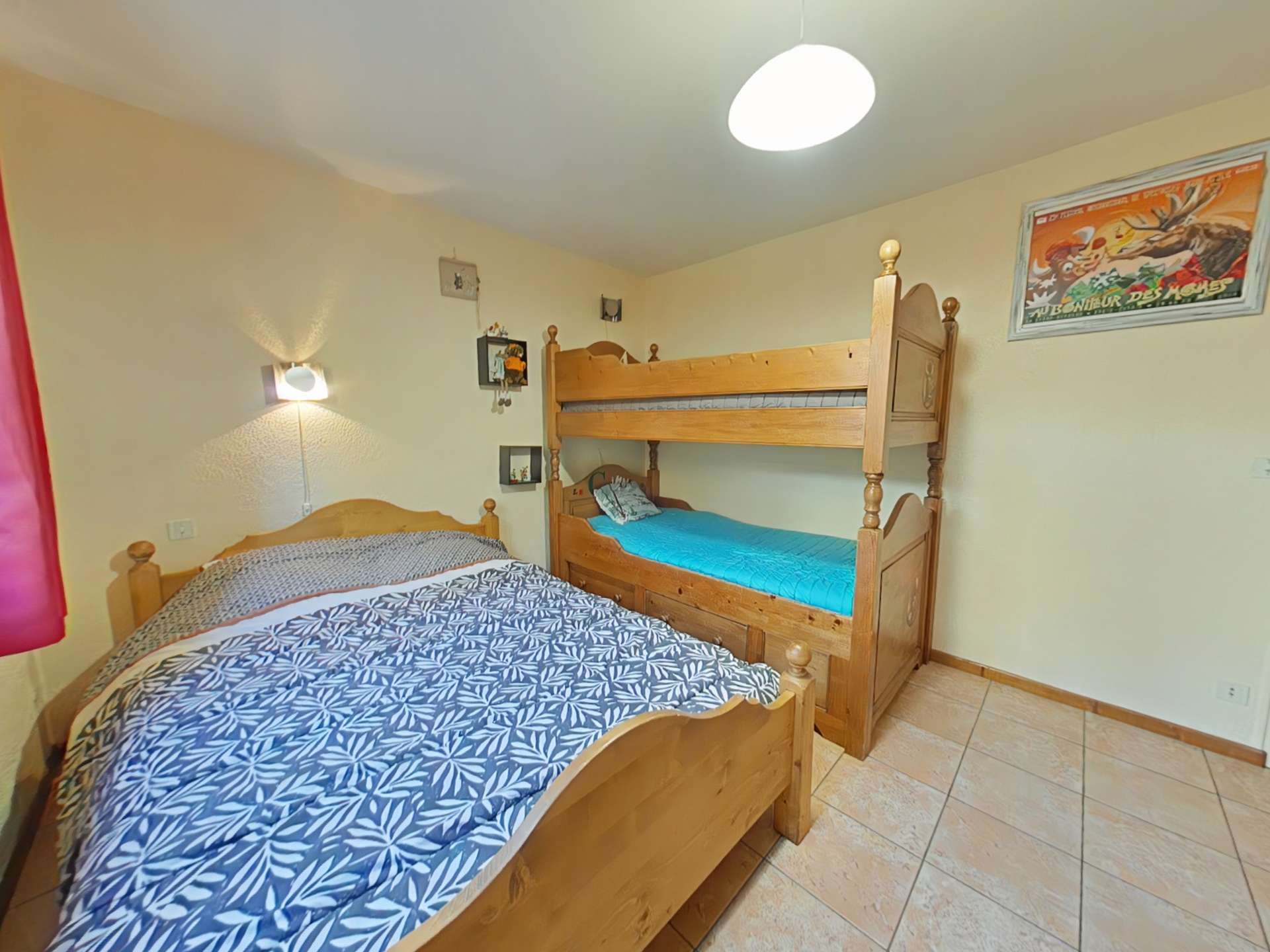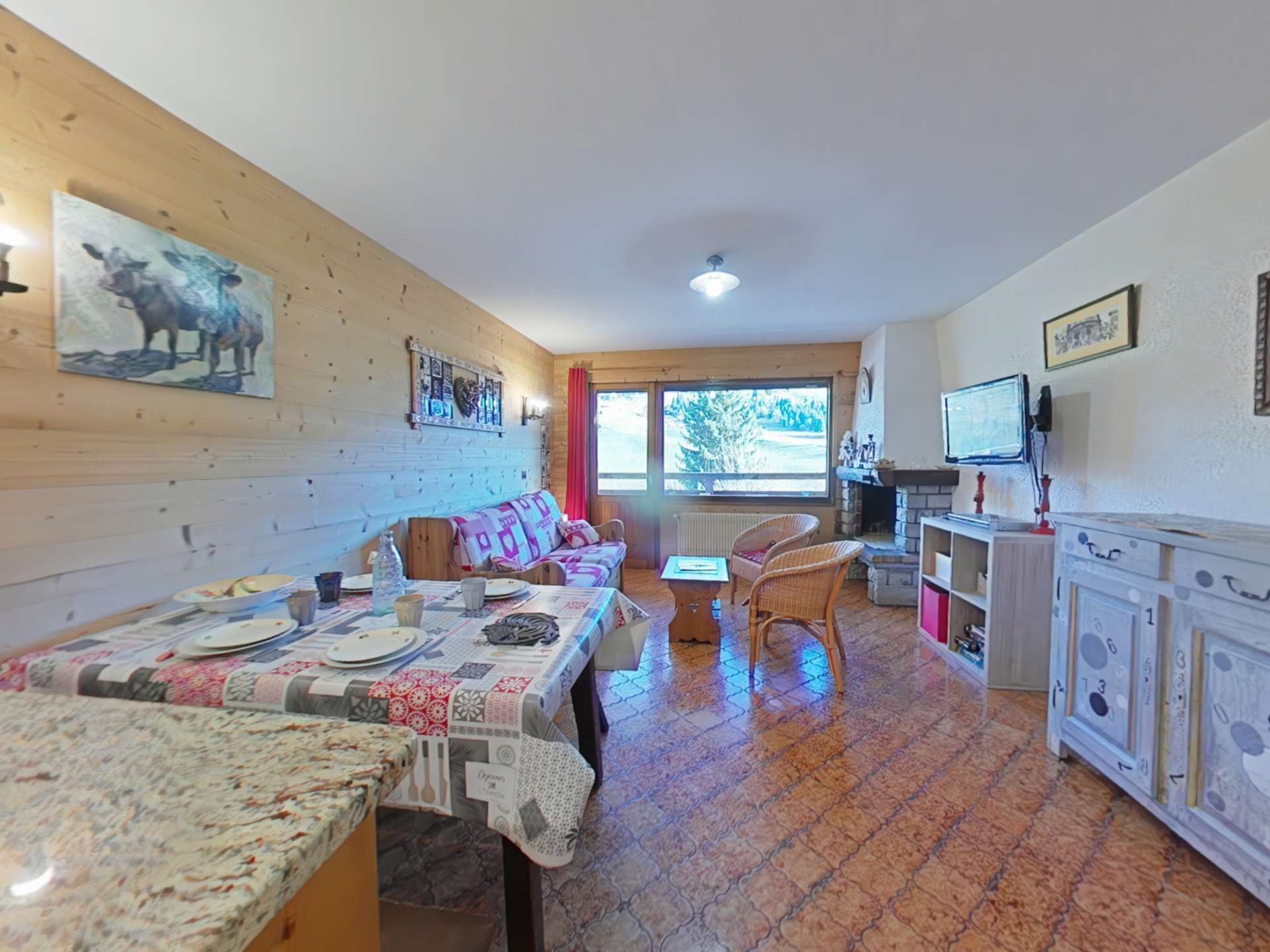This vacation apartment located on the 1st floor includes a living room with a double sofa bed and a television, a decorative fireplace, an equipped kitchenette, a bedroom with a double bed and two bunk beds, a bathroom with a washing machine, and a separate toilet. It features a south-facing balcony with magnificent views of the ski area and La Colombière, a ski locker, and shared parking in the residence. Overlooking the village, Le Samance offers one of the most beautiful panoramas in the resort—a setting not to be missed!