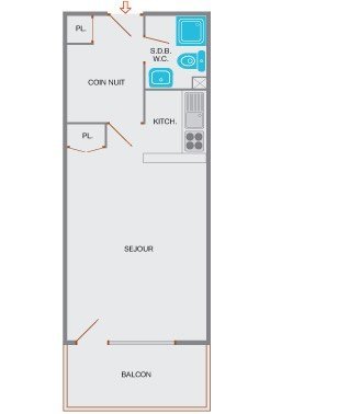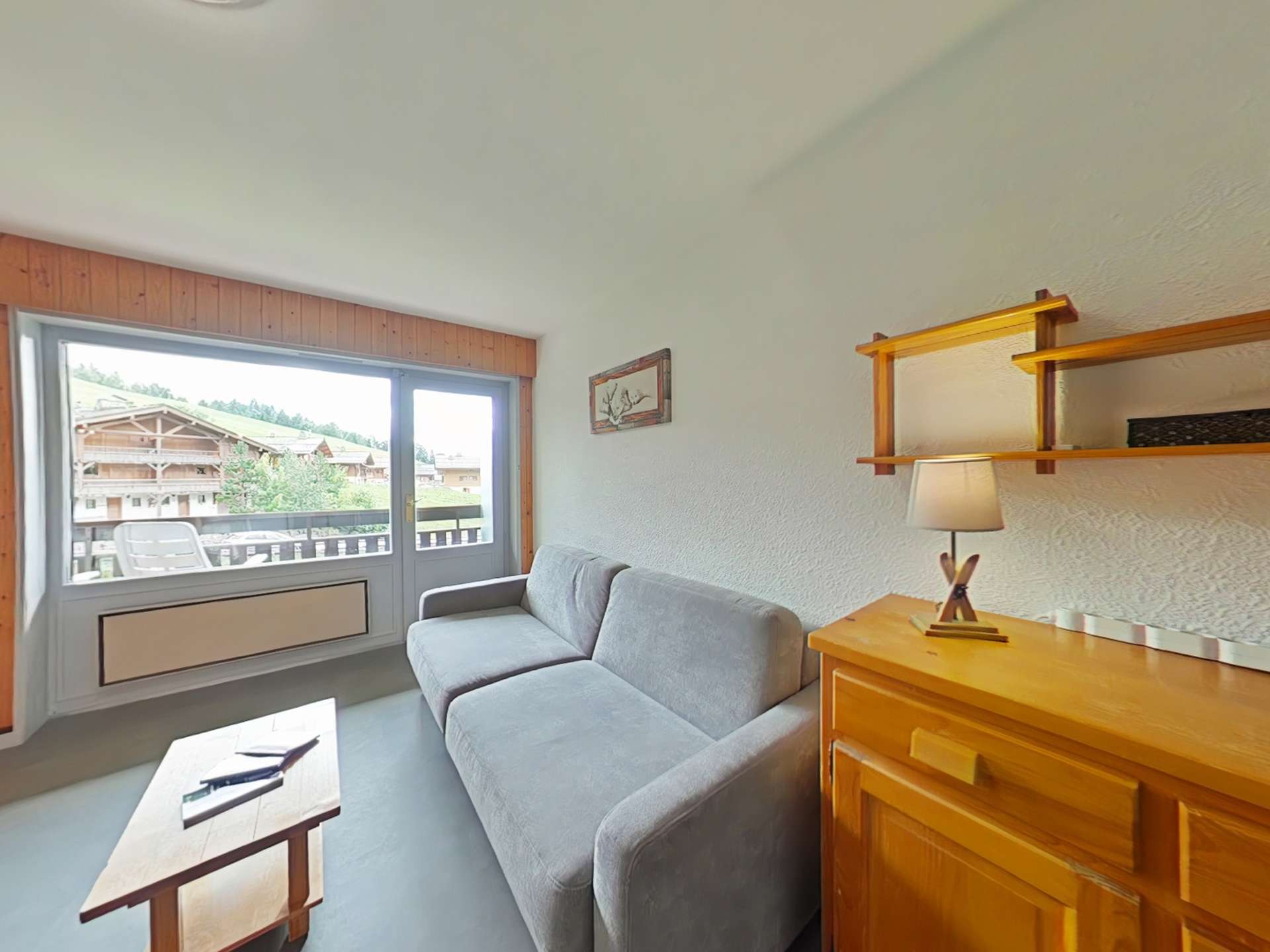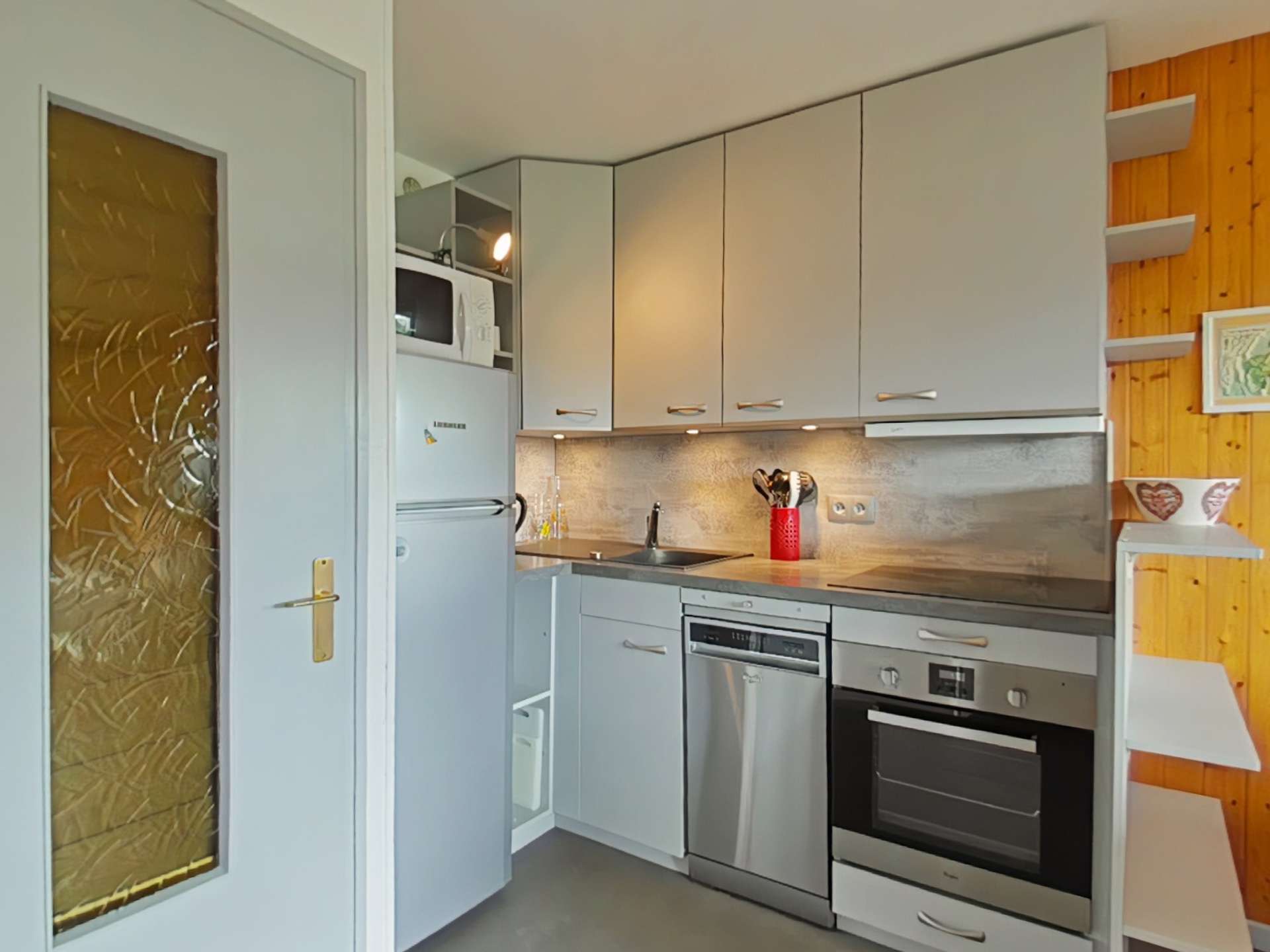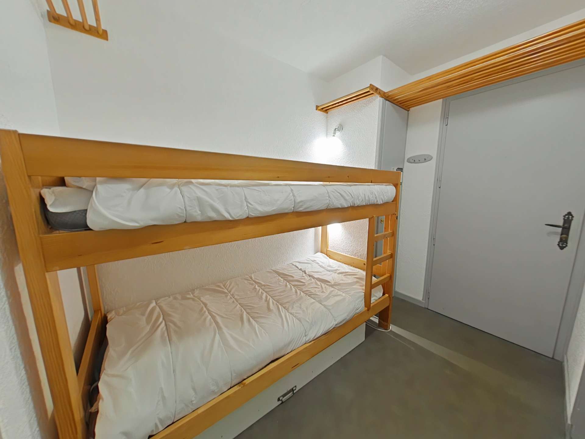This holiday apartment is located on the ground floor (1 floor down) and comprises a living room with a double sofa bed, a south-facing balcony with a view of the slopes, a kitchenette equipped with a dishwasher, 2 single bunk beds and a bathroom with a toilet. Parking at the residence (location not specified), ski locker.