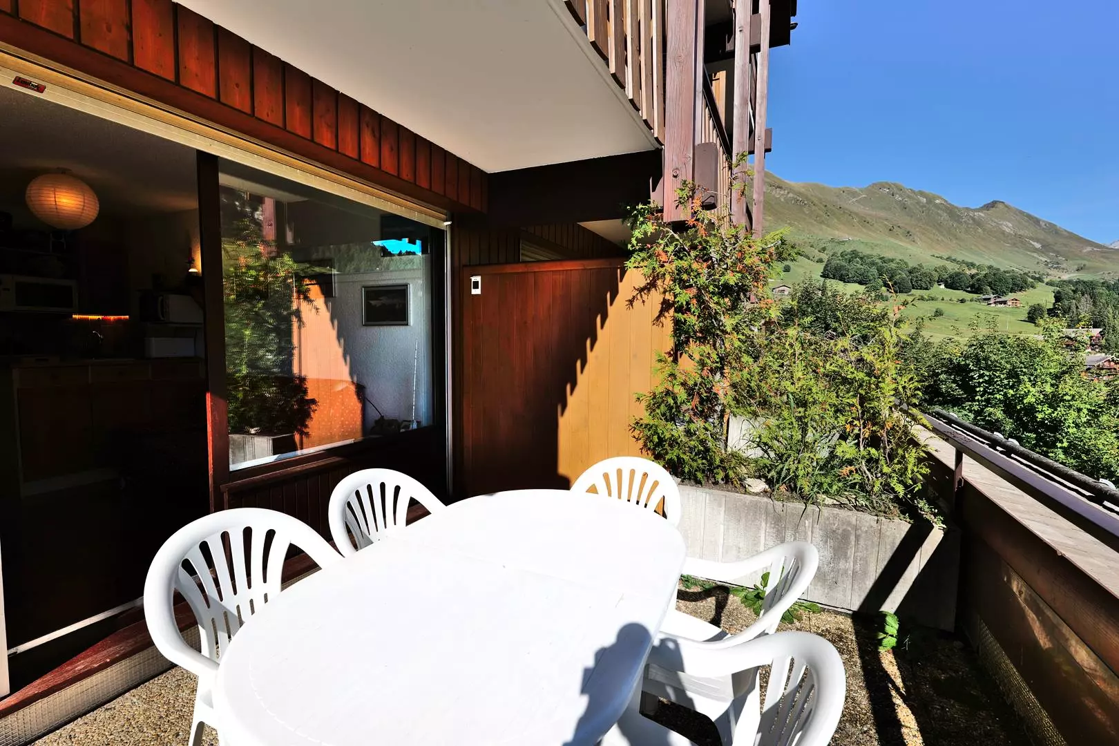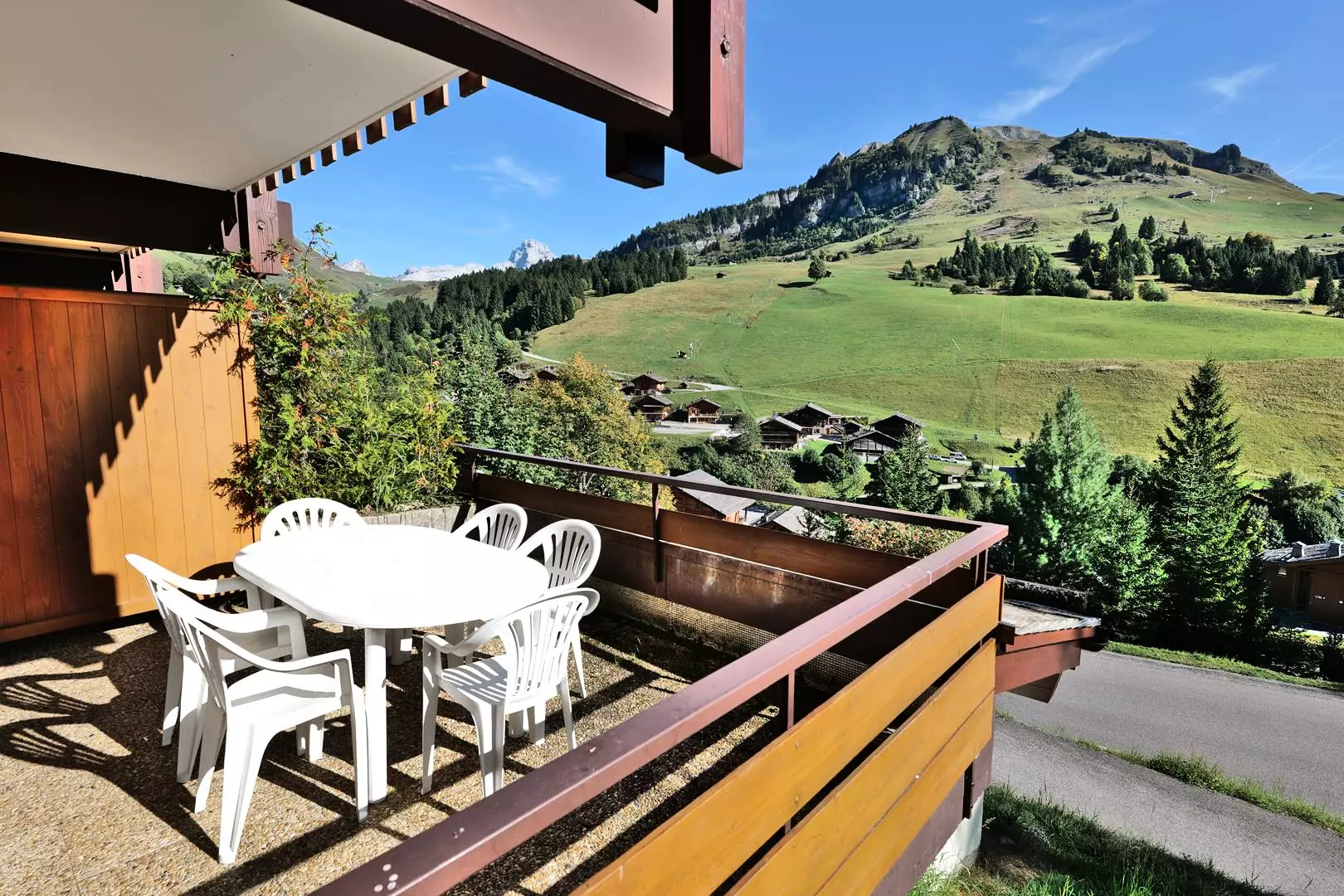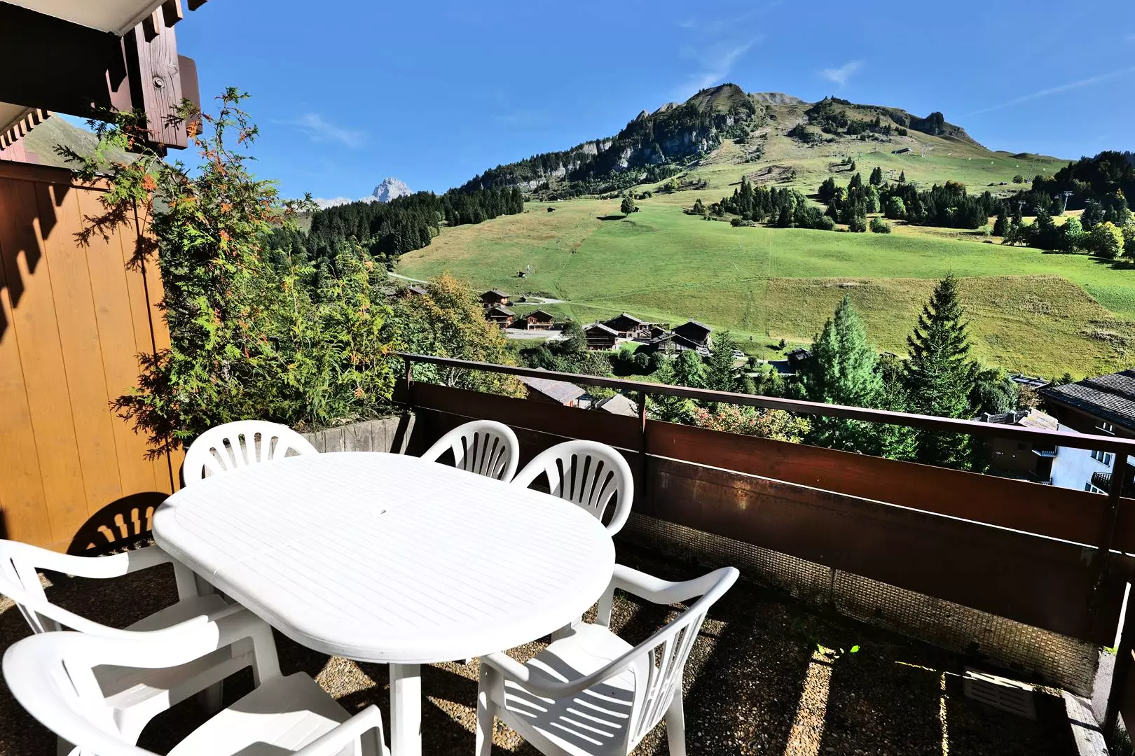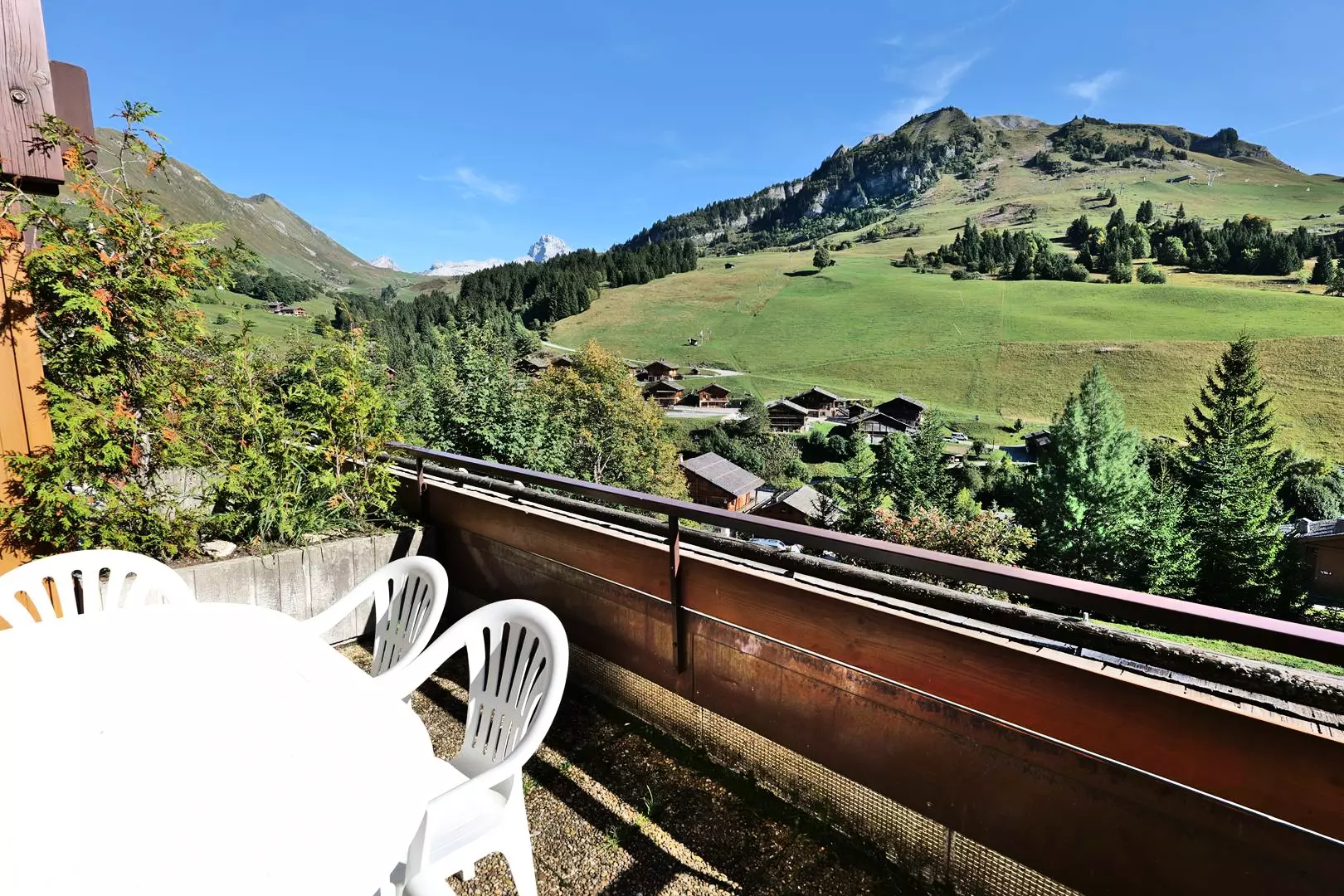 The apartment's large terrace facing the ski slopes offers unparalleled views and tranquility.