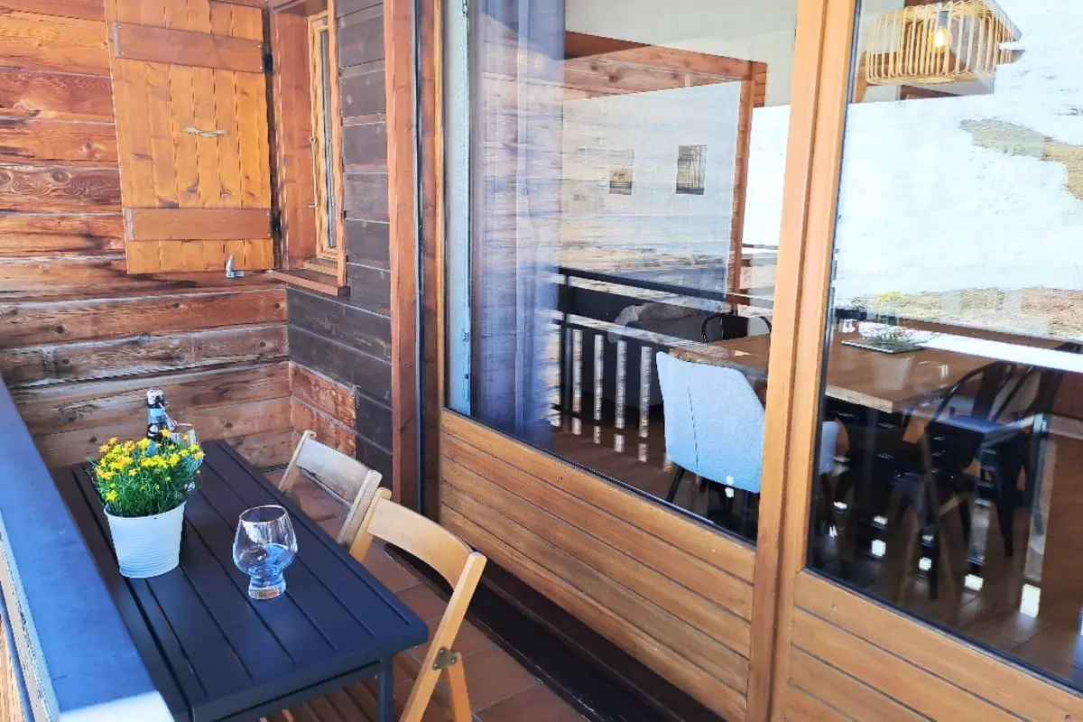 Balcony with table to enjoy the alpine scenery
